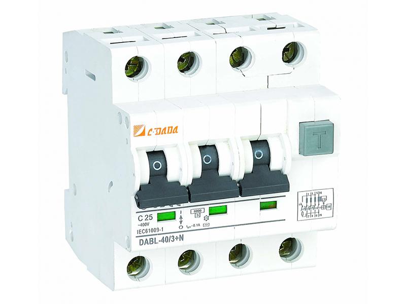 El interruptor diferencial electrónico RCBO DABL-40 6kA 10kA diseñado por los ingenieros de la empresa Dada funciona en forma estable, es preciso, se acciona rápidamente, y tiene una gran capacidad de corte, todo en un dispositivo en miniatura. Los interruptores son fabricados conforme a los estándares GB 10963 e IEC60898.