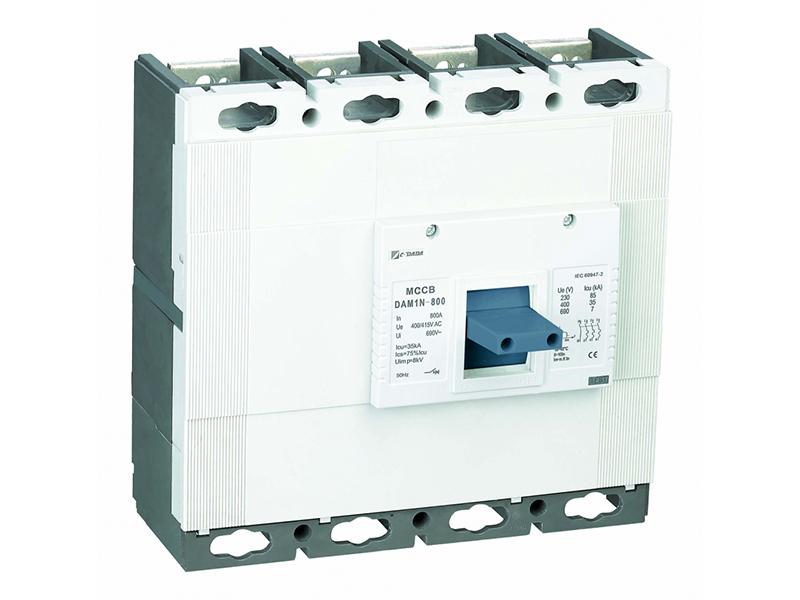 Los disyuntores en caja moldeada MCCB DAM1-800, son disyuntores de bajo voltaje. Se adaptan a pequeños usuarios, así como a grandes subestaciones industriales y a sistemas de distribución de energía. Se utilizan en acería, plataformas de petróleo, hospitales, estaciones de trenes, aeropuertos, centros de computación, oficinas, centros de convención, teatros, rascacielos, y en muchas otras grandes estructuras.