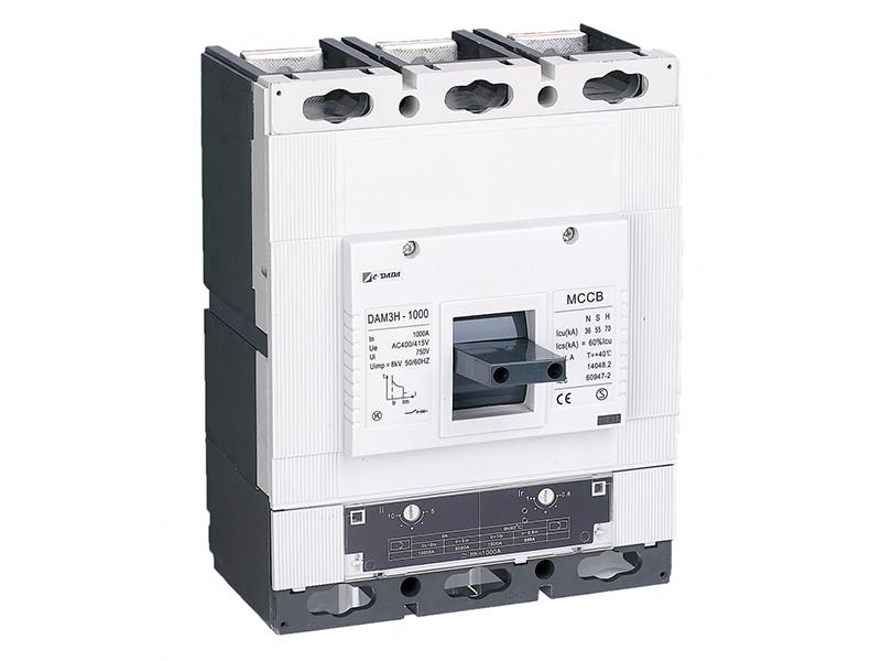 El interruptor de caja moldeada DAM3-1000, corta la corriente en forma automática, cuando la misma supere el límite permitido. La caja moldeada es el aislante plástico que se utiliza como marco del dispositivo para aislar el conductor y el componente de metal a tierra.